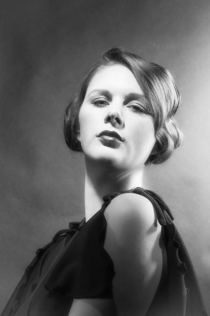 Professionell und stilvoll. Kleine Unregelmäßigkeiten verschwinden, Falten werden dezent geglättet – Sie bleiben ganz Sie selbst, ohne künstlich zu wirken. Die Ausarbeitung orientiert sich am Look der goldenen Hollywood-Zeit: nicht nur Schwarzweiß, sondern auch in Color Grading und Stimmung ein Echo der großen Klassiker.
